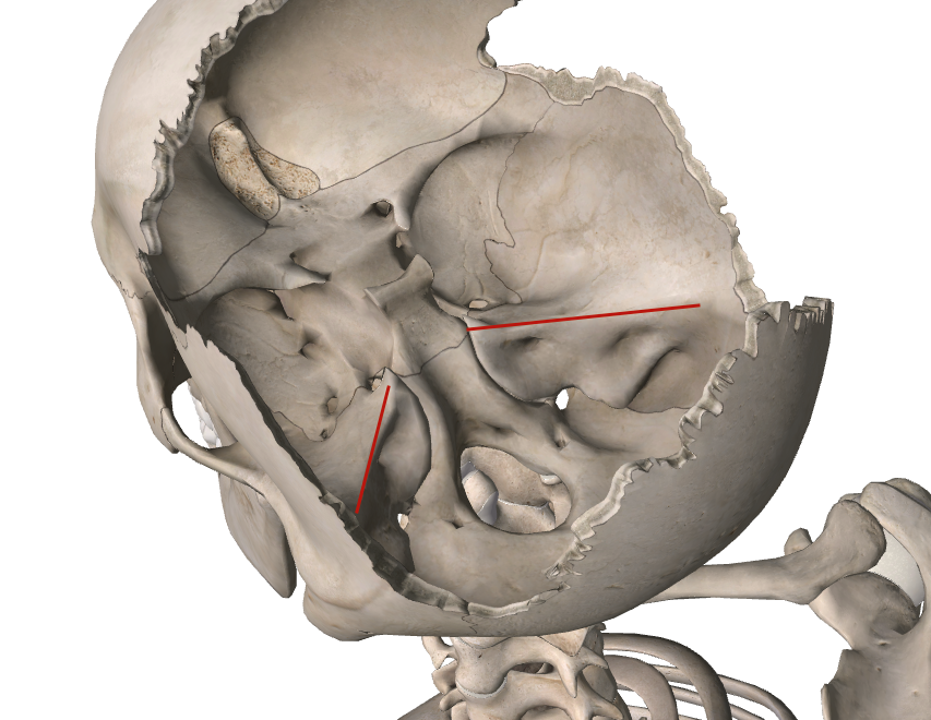 Je voulais juste savoir à quoi correspondait l'arête du rocher, qui limite l'étage moyen et postérieur de la vue endocrânienne?