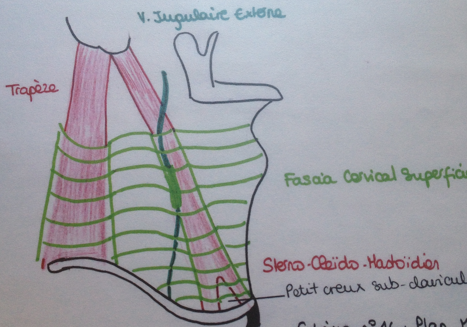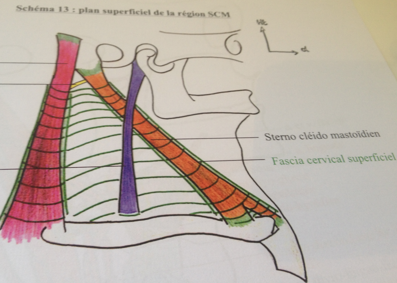 Quelle est la bonne version ? Il considère que le fascia cervical superficiel est sous tendu par le SCM (comme le fascia cervical moyen avec le muscle omo-hyoïdien) ?