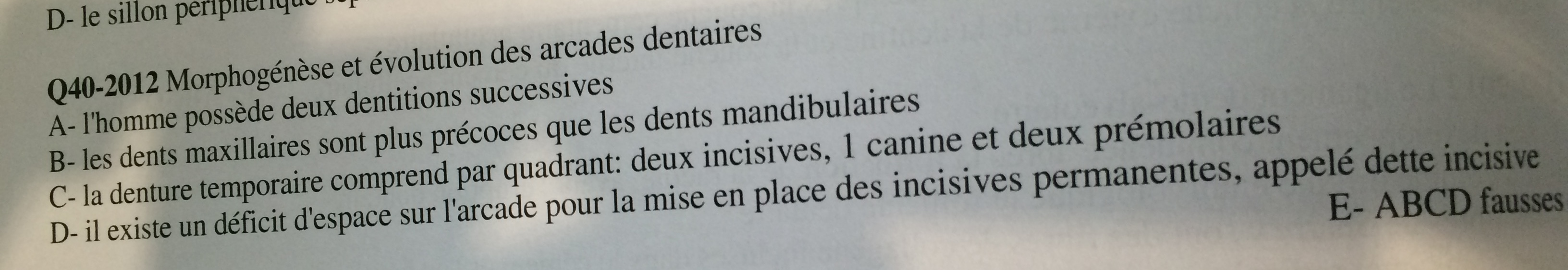 QCCM 40 => Comme les deux dentitions sont imbriqué ( denture mixte) peut être que le terme successif rend l'item faux, mais le jour du cc mettez vrai ;)