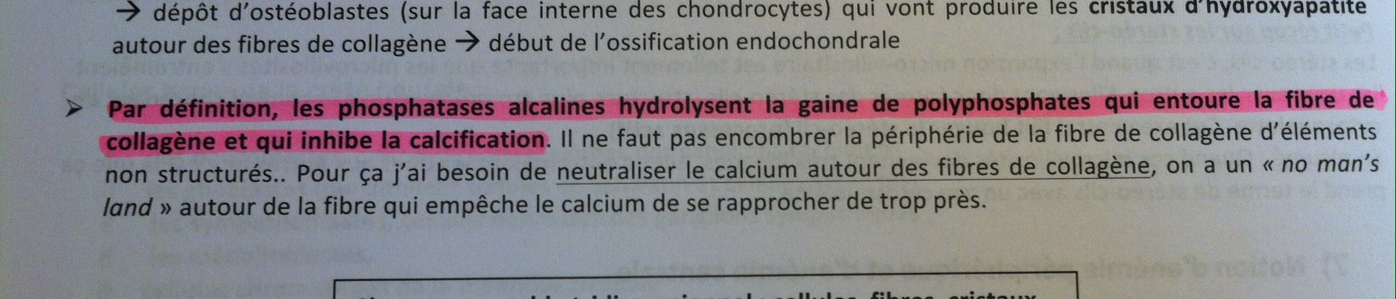 J'en profite pour une question la gaine de plyphosphate permet ou inhibe la calcification ? Si on parle de la calcification sous forme anarchique : elle le permet ok mais le prof a dit et je le cite "les phosphatases hydrolysent la gaine qui entoure la fibre et inhibe la calcification"