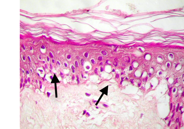 En effet tu peux avoir également avoir une dystrophie épithéliale suite à un brulure qui te donnera un épithélium avec une architecture différente :