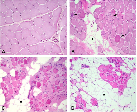 dégénérescence des fibres musculaire, ce sont deux phénomène distinct : l'un concerne l'architecture qui est modifiée, le second la mort des cellules.