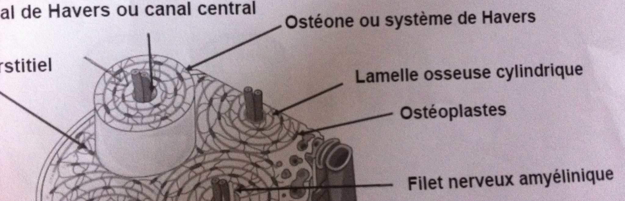 Car sur ce schema je sais pas si il on nous montre la ligne cimantente ou les petites taches grises foncé qui sont un peu présente partout sur chaque lamelle d'osteon.. Et si c'est ca je trouve ca un peu bizarre non?