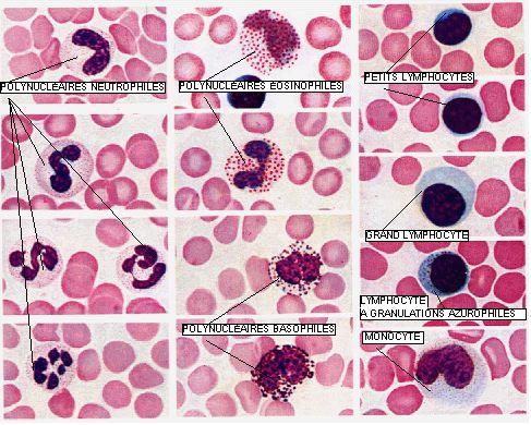 Les granulations des Eosinophile et des Basophile sont bien visible en microscopie optique
