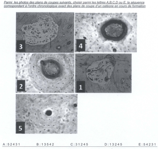 Je rajouterais que pour moi l'image 2 représente un stade plus avancé que la 4 puisqu'on voit bien que de nombreuses lamelles osseuses ont été déposées en 2, tandis qu'en 4 les premières lamelles viennent à peine d'être posées...