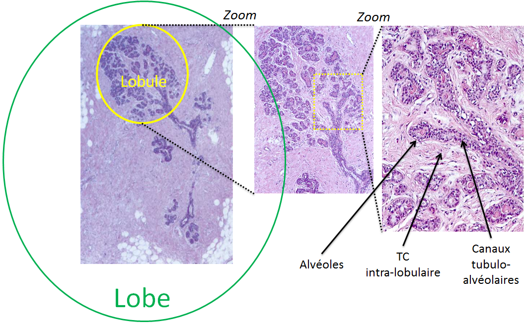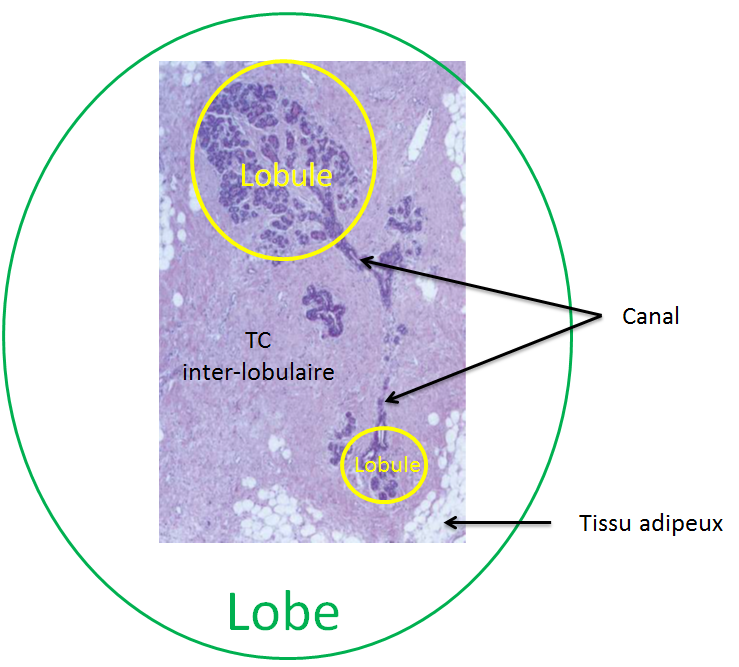 On peut dire que les "canaux tubulo alvéolaire" sont intra lobulaire et sont donc entouré du tissu paléal lache