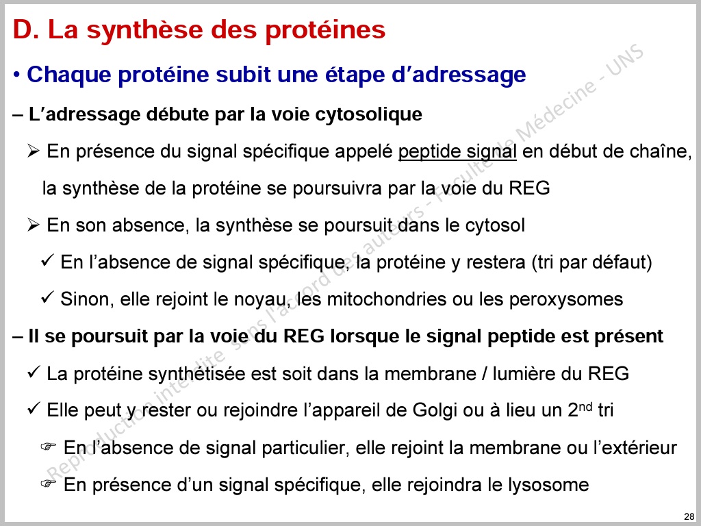 Mais du coup peptide signal c'est pas specifique pour le RE ?