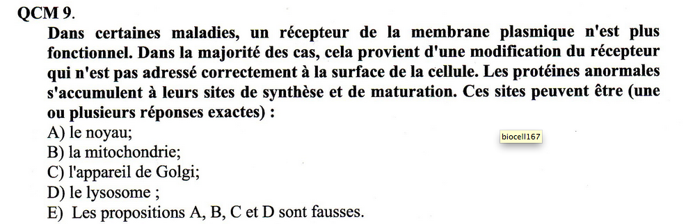 Petit soucis avec ce qcm. En regardant de vieux posts les anciens tuteurs avaient l'air d'être sûr pour la C juste, jusque là d'accord, mais il hésitait pas mal avec la A vu que la mb externe du noyau est relié au REG. Du coup j'aurais tendance à dire AC, je voulais savoir ce que vous en pensiez..