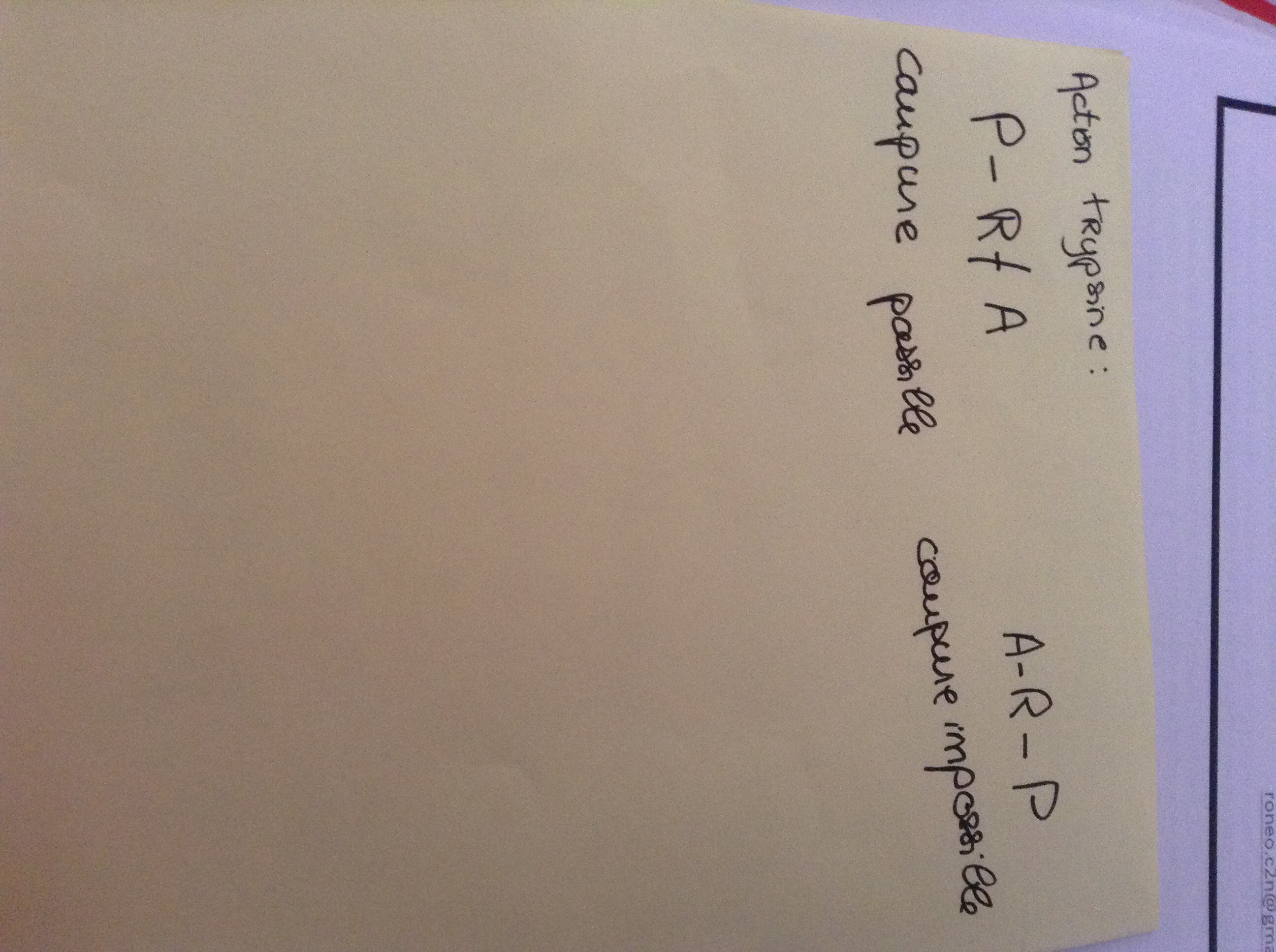 Il faut que la proline soit à droite de la liaison peptidique à couper pour annuler l'action de la trypsine si elle est à gauche je pense que la tryspine agit quand même...