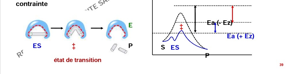 C'est ce qui va permettre l'abaissement de l'énergie d'activation donc c'est ce qui facilite la transformation