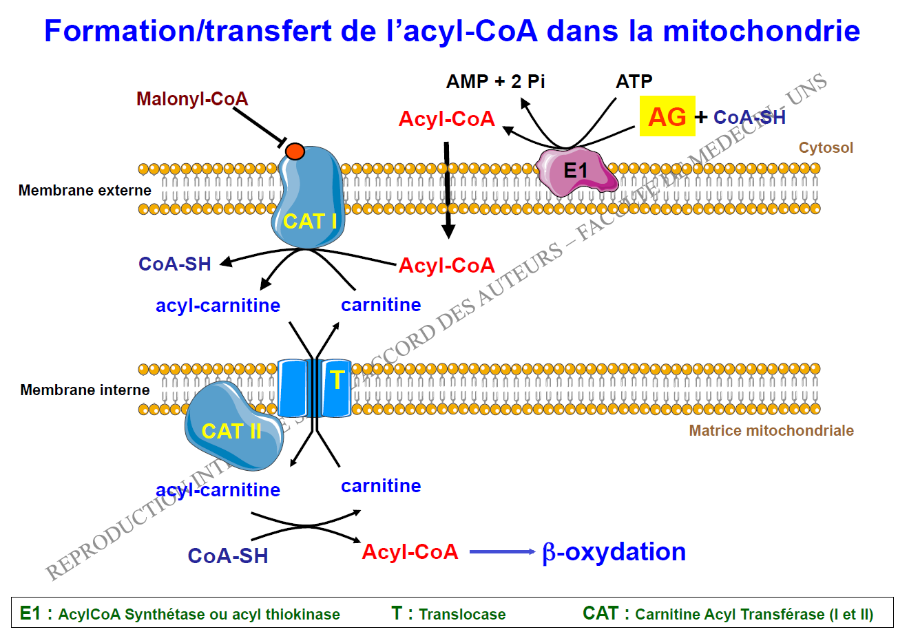 On sait que l'Acyl-CoA a (une fois catalysée par la thiokinase) passe la Membrane Externe Mito grâce au CAT 1 (qui le récupère dans l'espace inter membranaire)