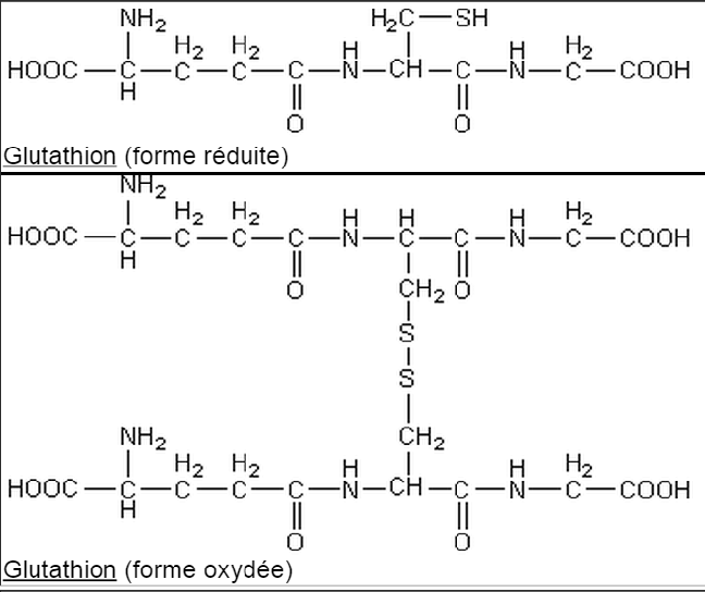 Oui comme tu peux le voir avec le schéma de Nissart (merci!): - Un glutathion oxydé correspond à la forme "dimérique" (G-S-S-G) - Un glutathion réduit est tout seul (G-SH)