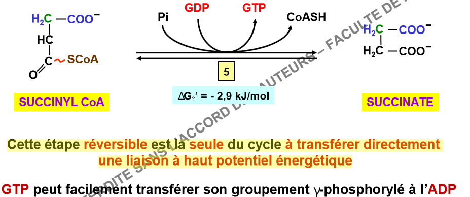 :arrow: Elle transfere bien une liaison HPE (elle transfère l'énergie de la laison -CoA qui est une liaison thiester HPE à la transf d'un GDP en GTP et donc la création d'une liaison phosphoanhydre HPE)