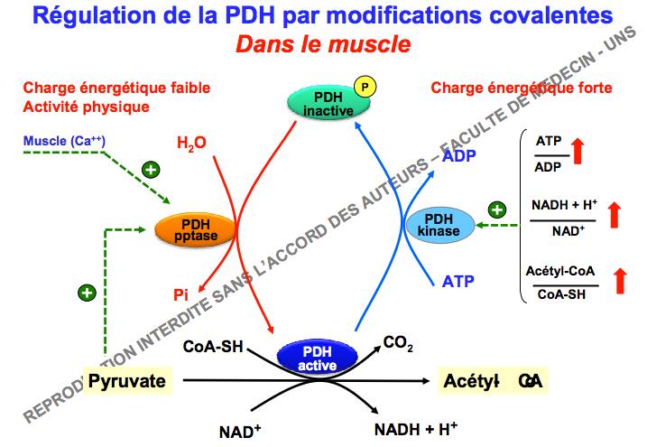 D) L'ADP et le pyruvate activent la PDH phosphatase, activant ainsi la PDH