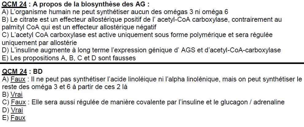 L'item D (décidément) dit que l'insuline régule à long terme l'expression génique des 2 enzymes, mais dans la ronéo c'est écrit qu'elle régule à court terme.