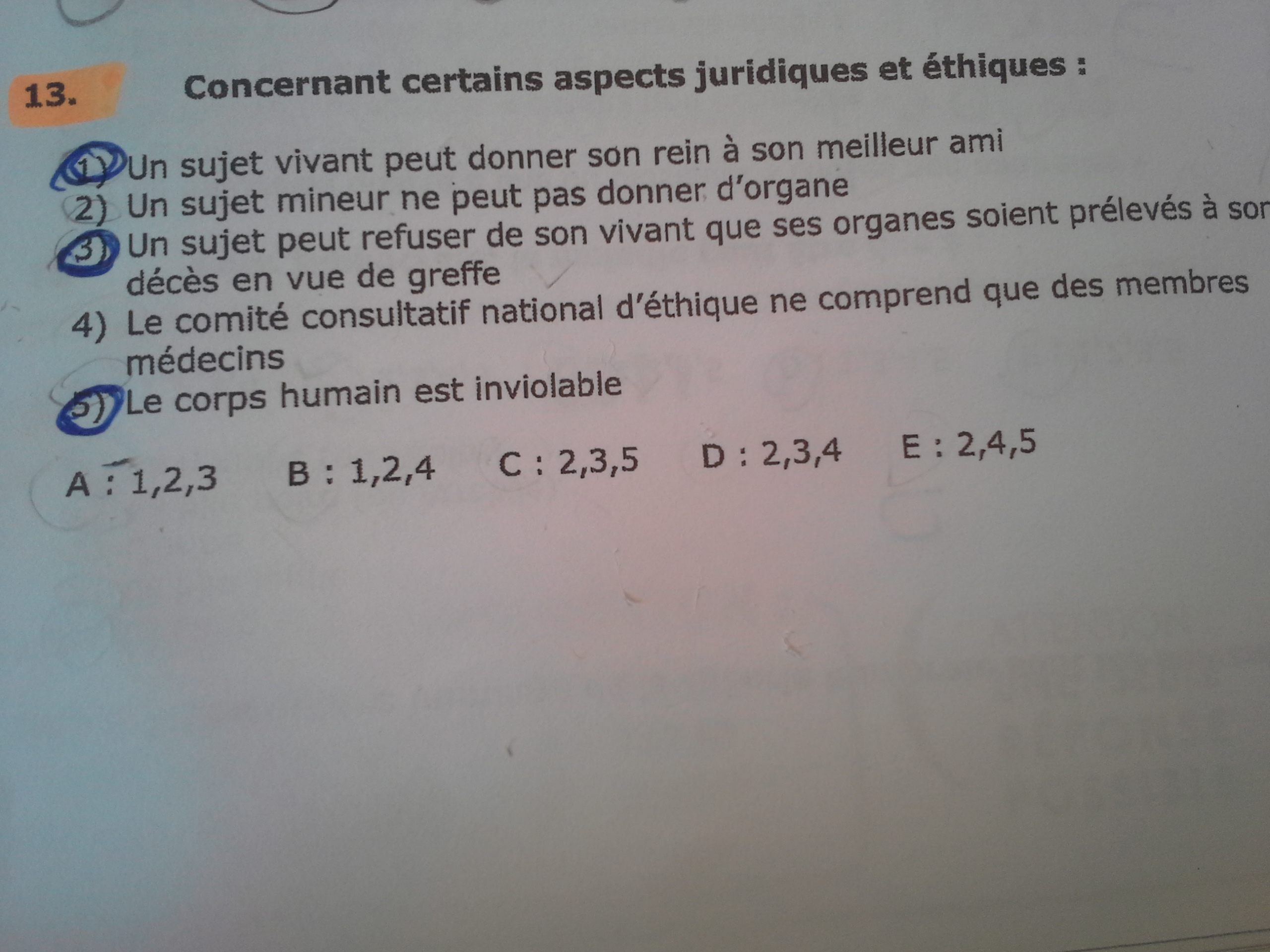 Est ce qu'on ne doit pas plutôt compter l'item Vrai par rapport au fait qu'un donneur vivant peut donner un organe s'il y a une "relation affective et étroite depuis plus 2 ans", ce qui est le cas avec un meilleur ami.