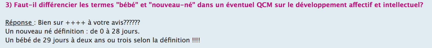Si l'item avait été "Le bébé développe le goût dès la naissance" à compter faux parce que c'est pas le bébé, mais le nouveau né ?
