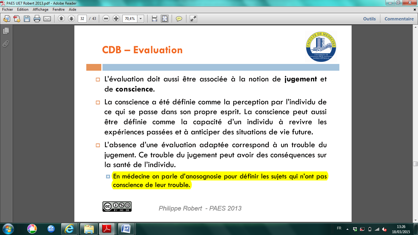 Bonjour ! Dans la roneo il y a écrit anosognosie = trouble du jugement.. Comment était on censé savoir cet item? J'ai peut être raté quelque chose