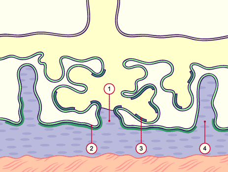 Puis après le 4e mois, le cytotrophoblaste disparaît peu à peu et ne persiste que sous forme d'éléments isolés (tu verras que ça permettra de faire moins de couche entre le sang maternel et le sang foetal ce qui facilite les échanges)