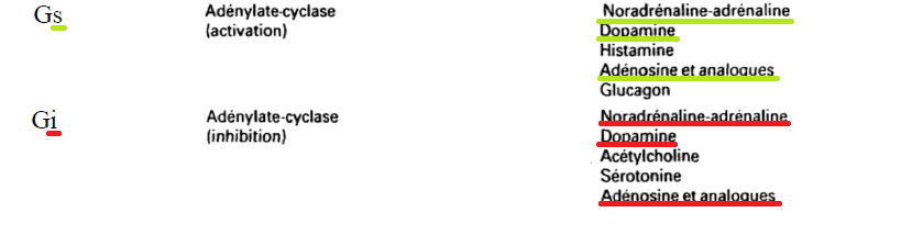 Ce sont les mêmes neuromédiateurs cités parce que Gs et Gi impliquent la même enzyme, mais ils ne provoquent pas tous les 2 la synthèse de ces neuromédiateurs :glasses-nerdy: