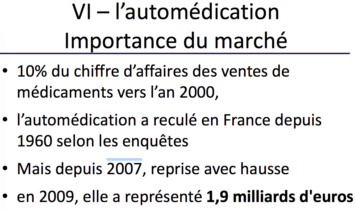 Je ne comprends pas pourquoi on dit que le marché de l'automédication diminue de 0,6% par an, alors qu'on nous dit ensuite que le marché de l'automédication a diminué mais est en hausse depuis 2007...