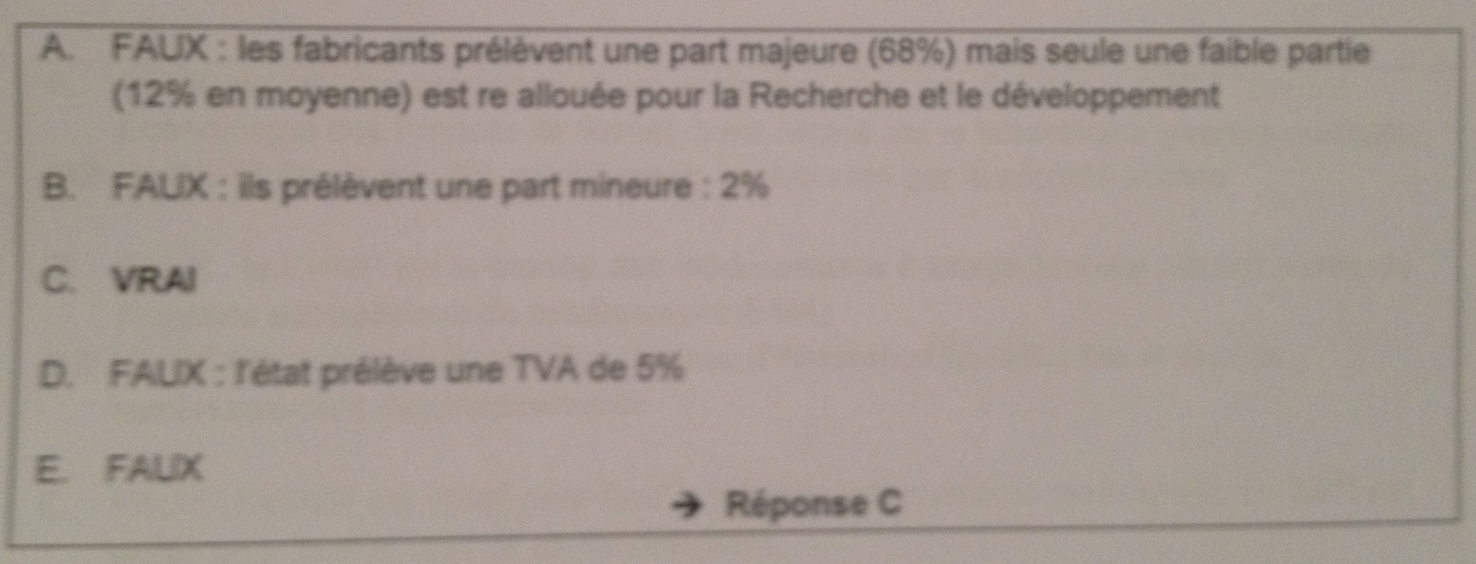 Re: QCM Aspects économiques du médicament