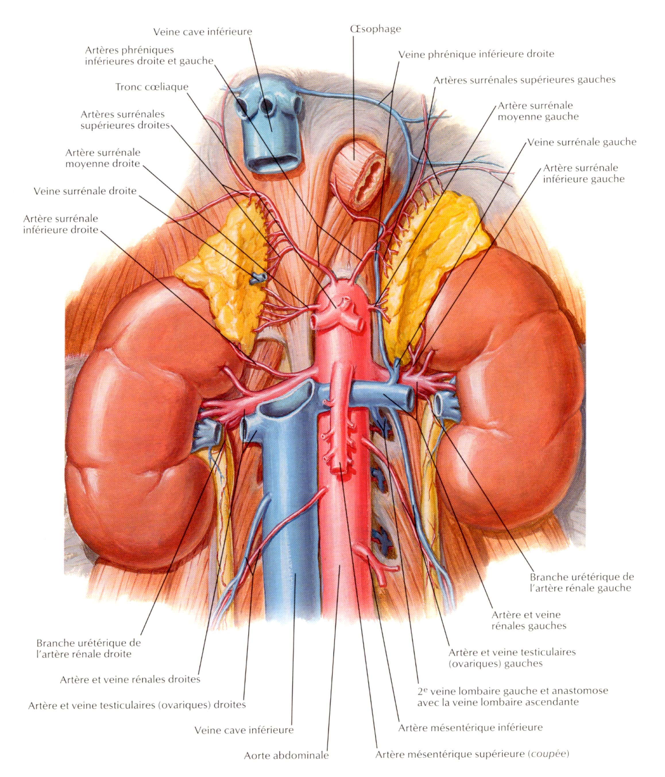 - les artères surrénaliennes moyennes issues directement de l'aorte