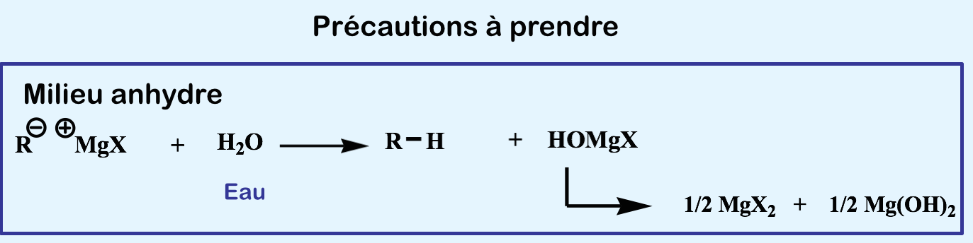 un item d'annales est : "à propos de la synthèse des organomagnésiens, elle se fait en milieu anhydre pour éviter une substitution nucléophile de l'organomagnésien par les anions OH-"