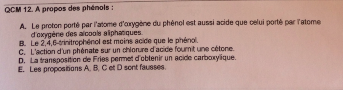 "la transposition de Fries permet d'obtenir un acide carboxylique", on le compte faux car on obtient une