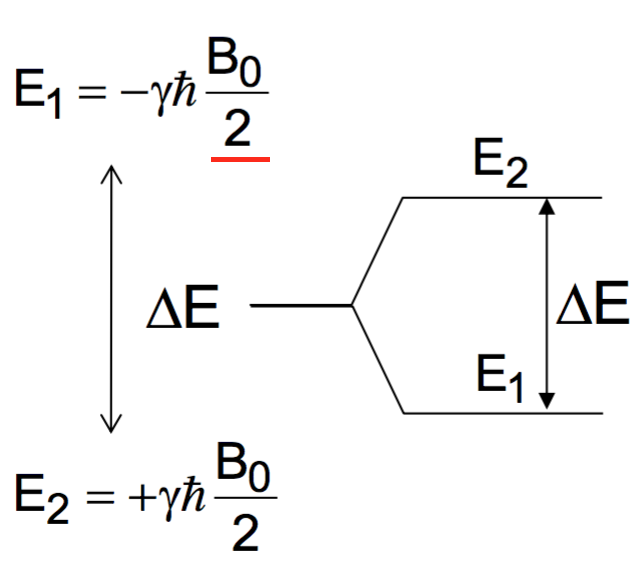 Je voulais simplement avoir une confirmation, on divise par 2 pour la première car B0 est "divisé" entre les 2 niveaux d'énergie ?