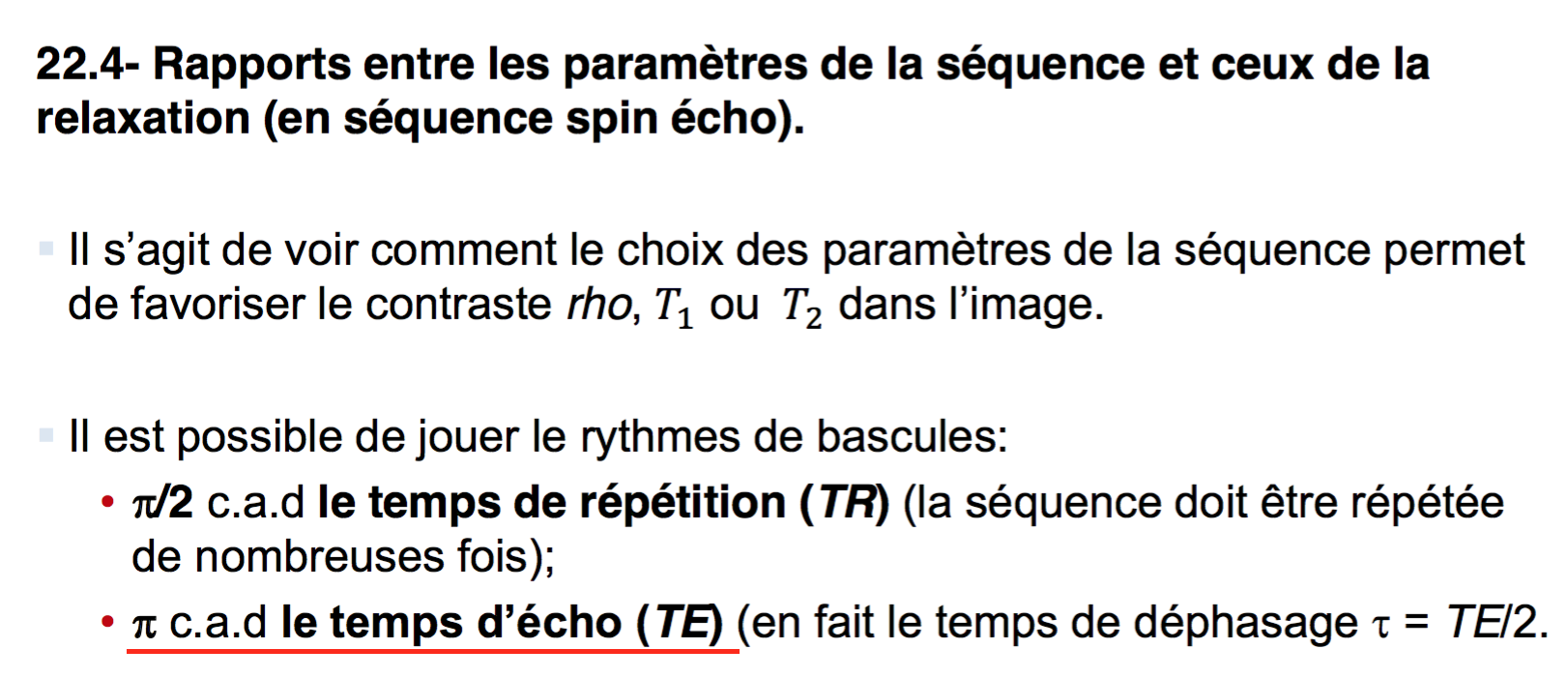 En fait je me demandais ce que voulait nous dire le prof dans cette diapo, donc je faisais l'hypothèse que le TE = pi puisque sur la diapo (souligné en rouge avec la flèche) on voit qu'entre 2 bascules pi on a 2 tho (je croyais que c'était téta :P ), de plus on nous dit dans le cours que le TR = Temps entre 2 bascules pi/2 :desire: