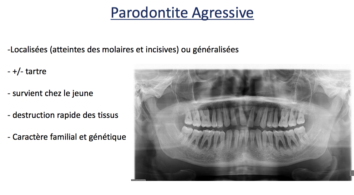 L'année dernière c'était détaillée, on a fait les parodondites agressives et à l'intérieur on avait séparément et détaillé les parodontites sévères localisées et généralisées :)