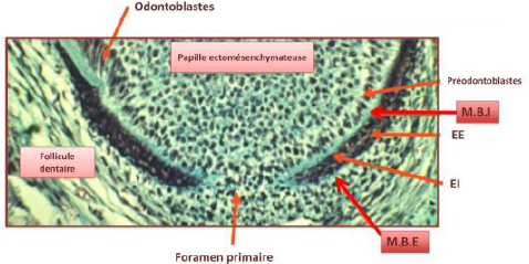 1) Juste avant l'amélogénèse lorsque l'on a disparition de la membrane basale et donc contact entre manteau dentinaire et améloblastes est-ce que l'on peut dire MB = EDI ? Pcq dans ce cas je ne vois pas où est l'EDI..