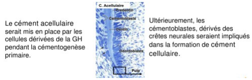 2) Lorsqu'on a fragmentation de la GEH, il est dit que la couche externe commence à se dissocier puis ensuite les expansions cellulaires des précementoblastes s'insinuent entre les cellules internes de la GEH et entraine une discontinuité de la MBI, et on voit sur le schéma que la dentine est en contact direct avec le cément, du coup là aussi on peut dire MBI = EDI ?
