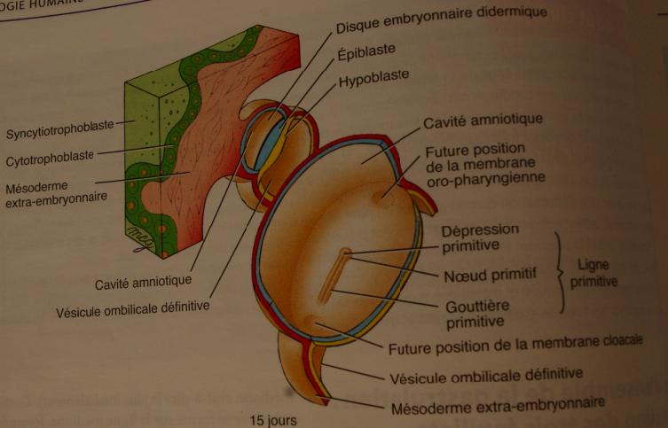 La gastrulation : c'est le premier événement majeur de la troisième semaine. C'est la formation du disque embryonnaire tridermique à partir du disque didermique ainsi que la définition des axes de l'embryons (grâce à ligne primitive).