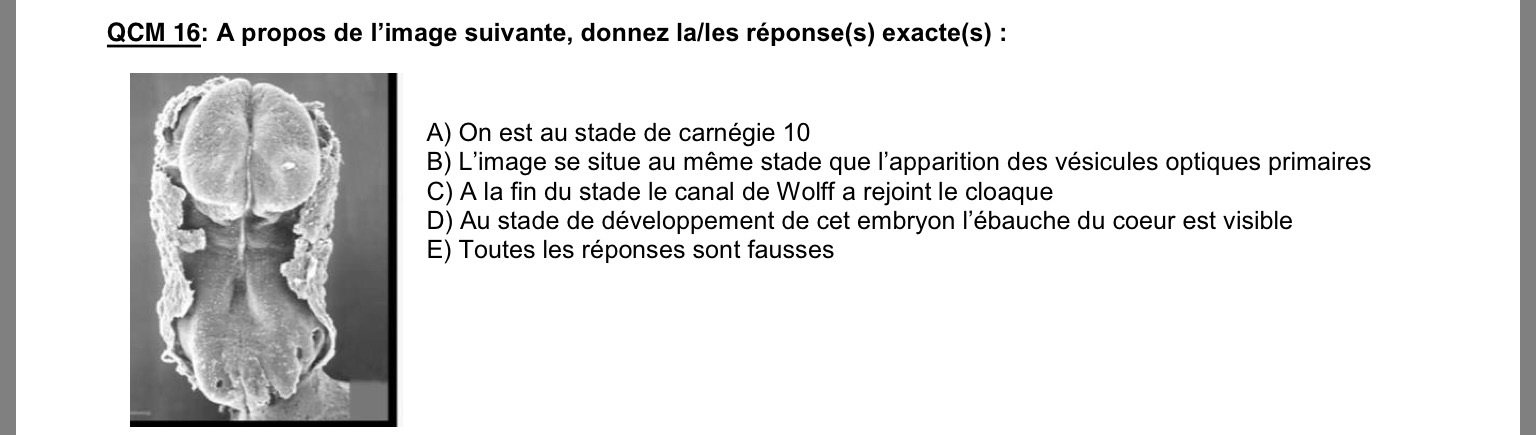 Je suis tomber sur ce qcm item D: (bon d'accord il est faux vu qu'on est au stade 9) mais: