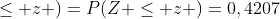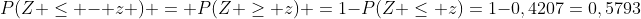 -> D'abord le prof pose P(Z<z)= 0,4270 ; mais on ne peut pas le lire dans le tableau car P(Z<0)=0,5, du coup on fait 1-0,4270= 0,5793