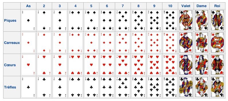 Le jeu comporte au total 52 cartes.