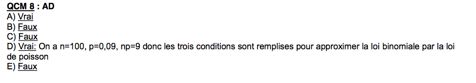 Concernant ce QCM, je ne comprends pas pourquoi pouvons-nous arrondir par la loi de Poisson étant donné que np=9>5 !