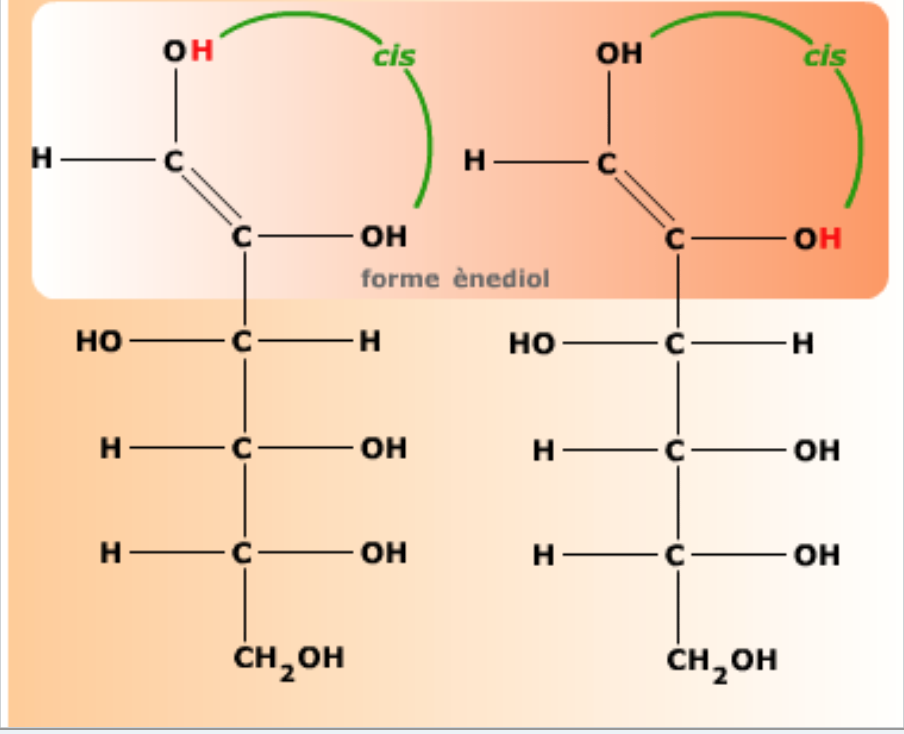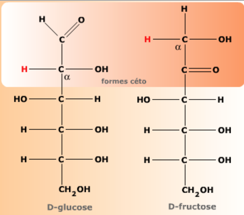 Ce transfert va permettre la formation d'une fonction énol aussi bien pour les cétoses et aldoses :