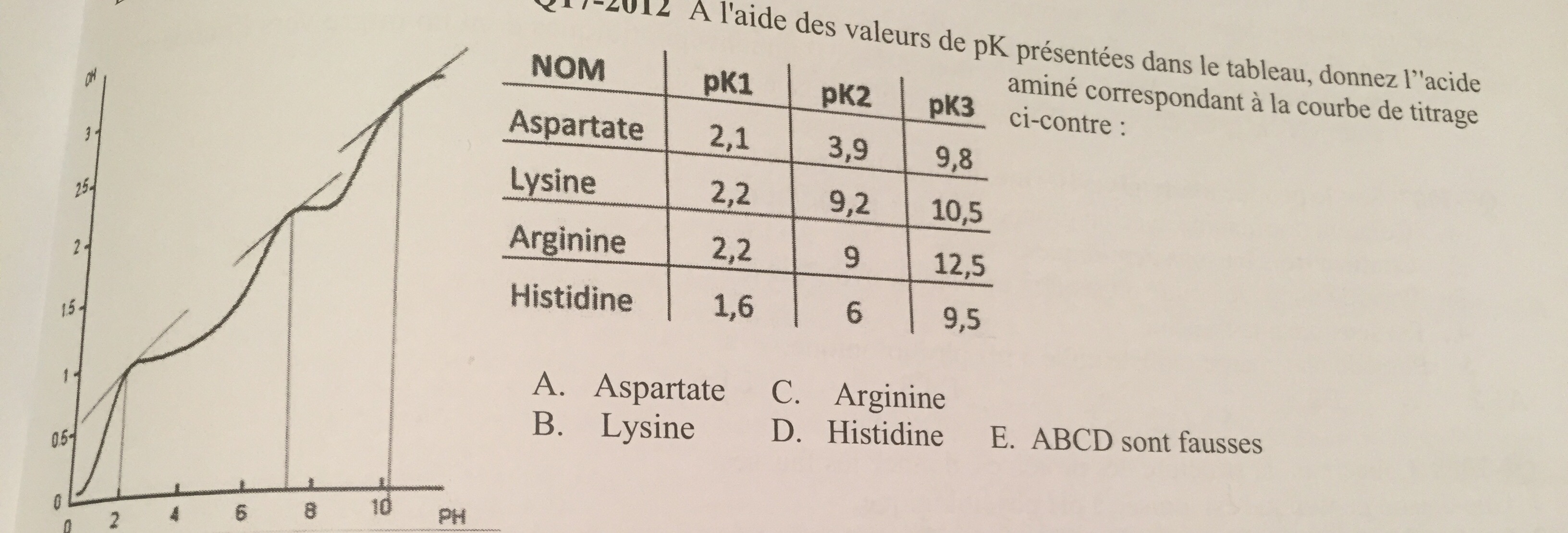 La réponse etait histidine pk1:1,6 pk2: 6 et pk3:9,5