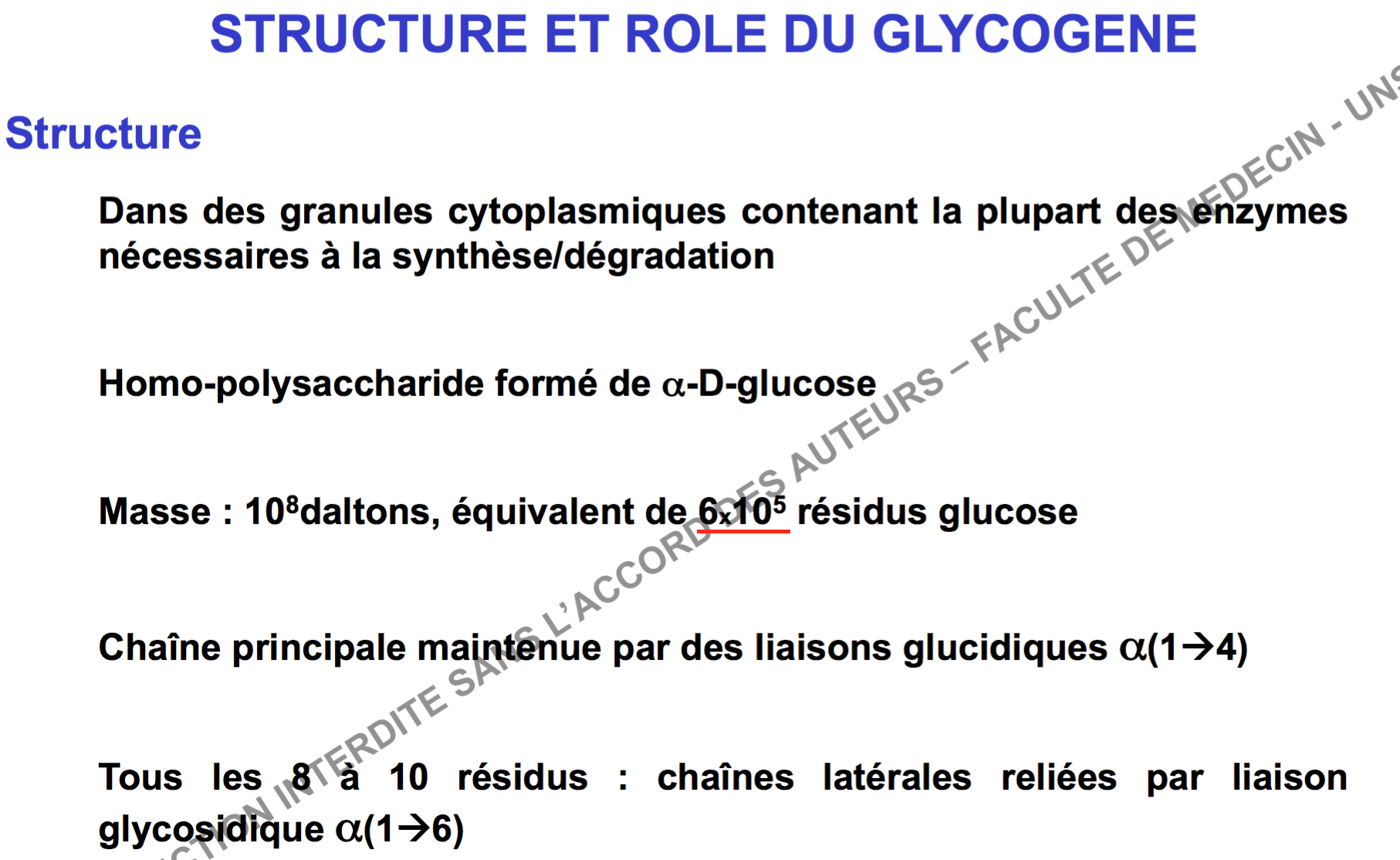 En fait la prof nous dit qu'une molécule de glycogène c'est 60 000 résidus de glucose donc 6x10^4, sauf que dans la diapo elle nous marque 6x10^5 @@