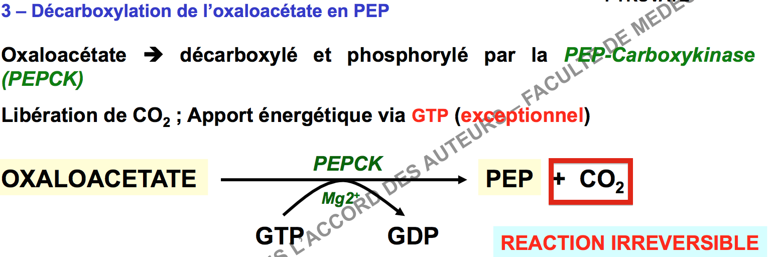Lors de l'étape de décarboxylation de l'OAA pour donner PEP pendant la NGG :