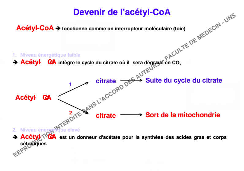 Ton foie, par exemple, a déjà produit beaucoup d'ATP, il est temps pour lui d'assurer le fonctionnement énergétique des autres tissus --> Il peut donc rediriger son métabolisme vers une reconstitution de molécules énergétiques pour le redistribuer vers d'autres organes; ex: CC --> Cerveau! Du coup, ton Acétyl-Coa est quand même produit parce que c'est à partir de lui qu'on va produire les CC; étant un carrefour métabolique, il peut provenir du catabolisme de tous les substrats biochimiques, dont les glucides, donc à la suite de l'action de la PDH dans la mitochondrie: Il ressort donc vers le cytoplasme ;)