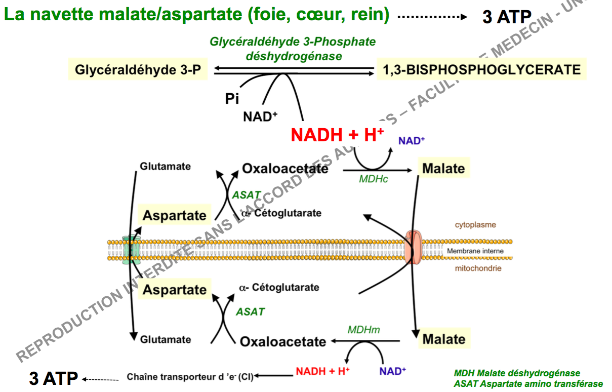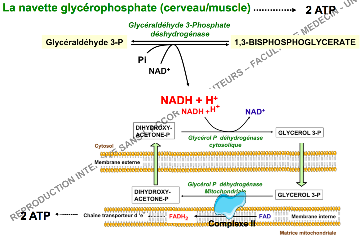 Car lors de l'utilisation de la navette glycérophosphate a transformation du DHAP en Glycérol 3P a bien lieu EN DEHORS de la membrane externe