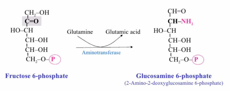 Deux questions : Pourquoi est-ce que ce serait le G-1-P qui donnerait le glucuronate ? Nous avons vu en structure que c'était l'oxydation du glucose qui aboutissait à cette molécule. Le fructose-6-Phosphate est transformé en glucosamine-6-Phosphate de quelle manière, s'il vous plait ?
