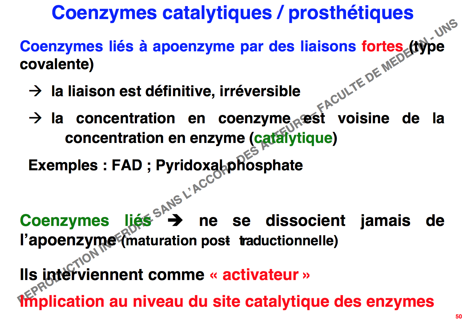 A) Faux/Vrai : On est pas totalement d’accord.. Le coenzyme est lié à l’apoenzyme ce qui forme un holoenzyme (mais dans le fond, l’item est ambigu...)