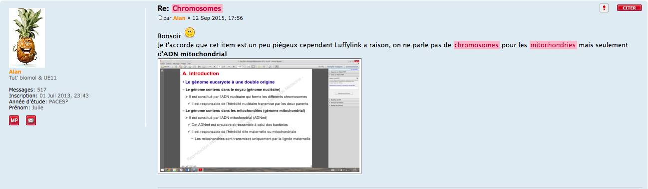 Pour le post sur les chromosomes, c'était une erreur de notre part, désolée! :loser: