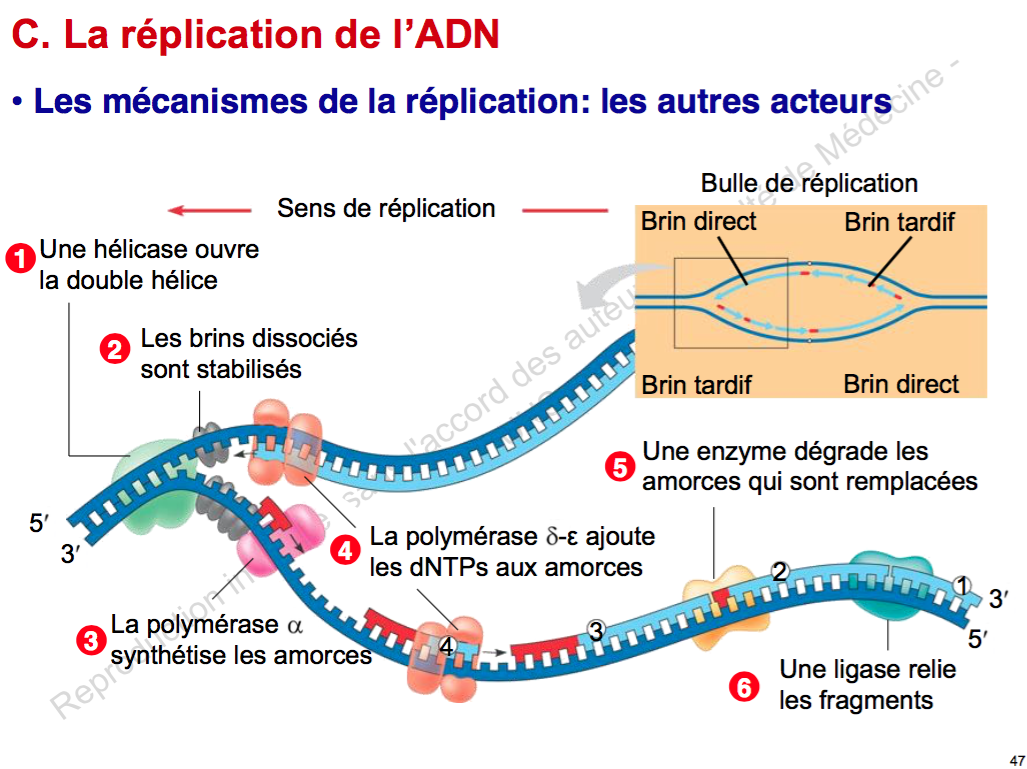 on dit que la replication doit se faire en 5' -> 3' du brin fils , pourtant sur les diapos on voit que la premiere amorce est synthetise en 3' et ainsi de suite!