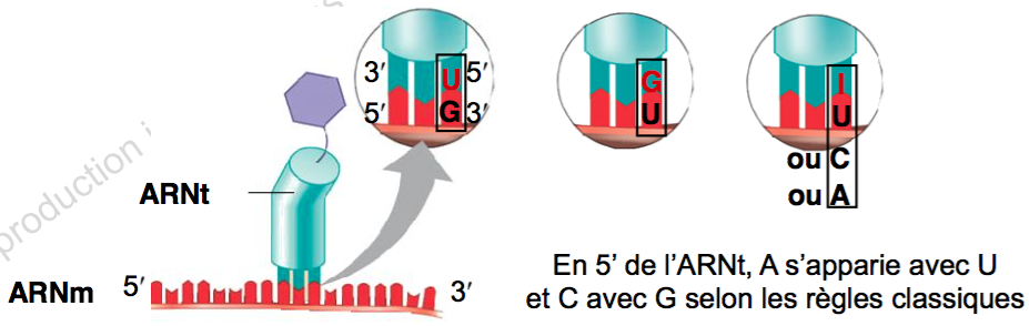 )Je suis pas sûr d'avoir compris, les appariements spécifiques sont valables que pour les ARNt lorsqu'ils s'apparient sur les codons ?